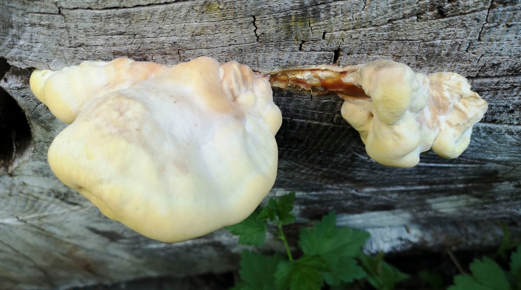 Så här skriver Wikipedia: ”Svavelticka är en svampart av typen tickor. Den växer på trädstammar, särskilt ekar, där den mångflikiga fruktkroppen kan nå en vikt av upp till 10 kg. Den är en av få trädsvampar som är användbar som matsvamp, och den engelska sidobenämningen chicken-of-the-woods syftar på svampköttets likhet med kycklingkött.”