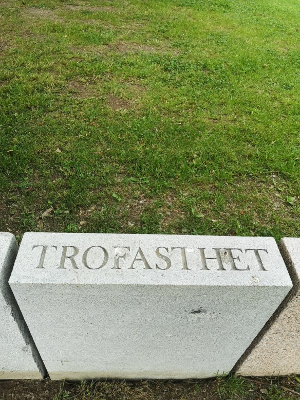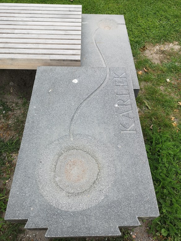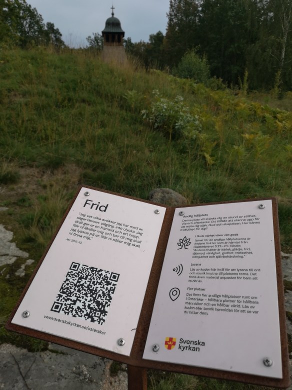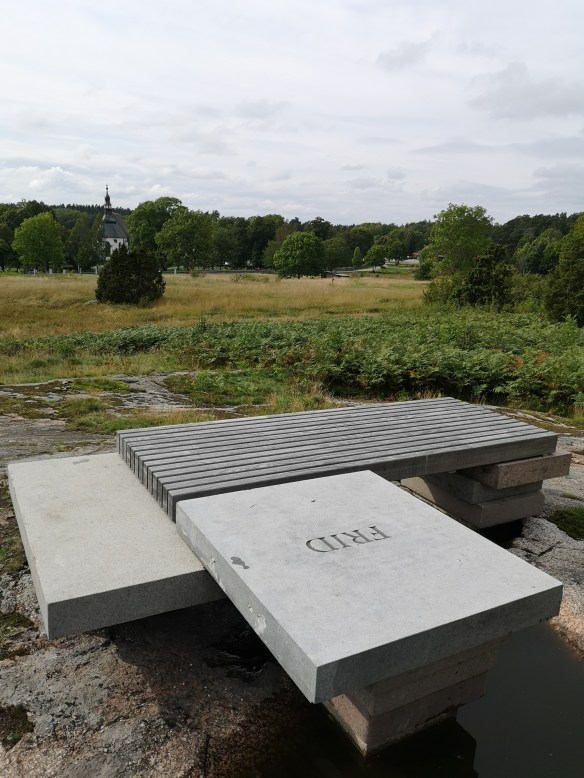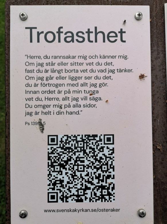 Österåkers slogan ”Möjligheternas skärgårdskommun” gör mig alltid irriterad. Så jag kan säkert behöva att då och vandra till de här hållplatserna och sätta mig ner och begrunda deviserna: Frid, Ödmjukhet, Kärlek, Tålamod och Trofasthet -som är de jag hittills tagit mig till. Godhet och Glädje kvarstår.