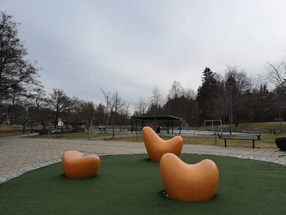 Konstverken ovan behöver varandra och är perfekt placerade, tycker jag nu, för att utföra en sorts dialog mellan hur en pjäs kan inta ett rum och hur det senare påverkas. Österåker är bra på offentlig utsmyckning vilket är väldigt roligt, jag undrar om kommunen inte ligger högt i hur mycket pengar man spenderar på konst?